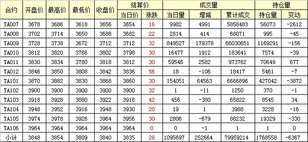 主力TA009合約當(dāng)日交易走勢