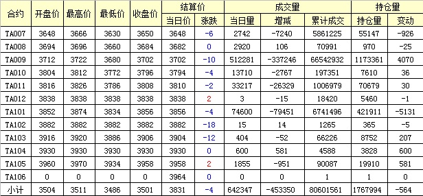 主力TA009合約當(dāng)日交易走勢