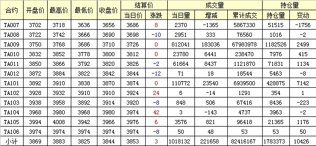 主力TA009合約當日交易走勢