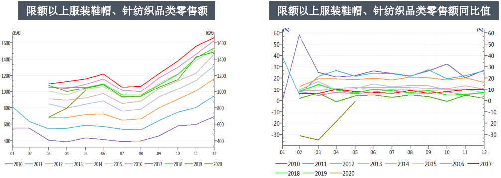 據(jù)國家統(tǒng)計局?jǐn)?shù)據(jù),5月限額以上服裝鞋帽、針紡織品類零售額1018億元,同比下降0.6%,降幅較上月縮小17.9個百分點。前5個月限額以上服裝鞋帽、針紡織品零售額累計4067億元,同比下降23.5%,降幅較上月縮小5.5個百分點。5月限額以上服裝鞋帽、針紡織品類零售內(nèi)銷數(shù)據(jù)大幅有好轉(zhuǎn)跡象。