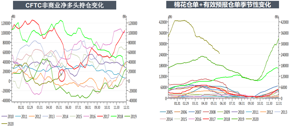 國內(nèi)棉花已連續(xù)幾年降庫存,目前庫存已下降到一個相對合理且較低位置。從未來一段時間供需角度看,棉花保持近幾年供應(yīng)充足常態(tài),本年度在新花上市前供應(yīng)充足,但商業(yè)庫存預(yù)計未來幾個月會同比大幅下降。需求方面,國內(nèi)消費5月數(shù)據(jù)大幅好轉(zhuǎn),出口方面數(shù)據(jù)仍差預(yù)計要等到下半年甚至第4季度數(shù)據(jù)才會逐漸出現(xiàn)好轉(zhuǎn)。整體消費雖仍不如往年同期,但在逐步恢復(fù),國內(nèi)供需基本面在逐步改善。目前市場仍存在著較大不確定性是蝗災(zāi)和疫情二次爆發(fā)。