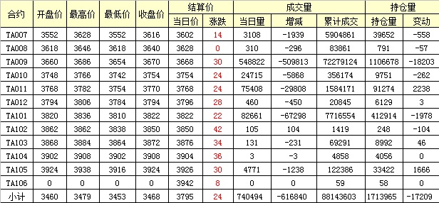 主力TA009合約當(dāng)日交易走勢(shì)
