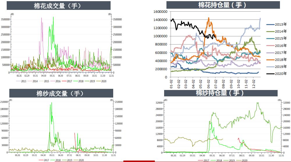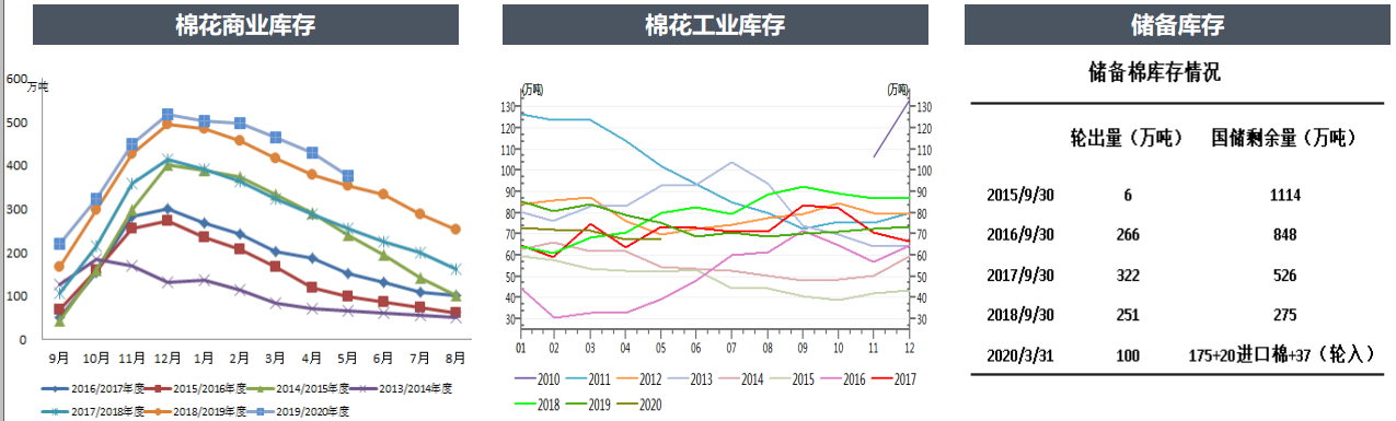 從未來一段時間供需角度看,棉花保持近幾年供應(yīng)充足常態(tài),本年度在新花上市前供應(yīng)充足,但商業(yè)庫存預(yù)計未來幾個月會同比大幅下降。需求方面,國內(nèi)消費5月數(shù)據(jù)大幅好轉(zhuǎn),出口方面數(shù)據(jù)仍差預(yù)計要等到下半年甚至第4季度數(shù)據(jù)才會逐漸出現(xiàn)好轉(zhuǎn)。整體消費雖仍不如往年同期,但在逐步恢復(fù),國內(nèi)供需基本面在逐步改善。儲備棉輪出從7月1日開始至9月30日結(jié)束,輪出最近幾天成交較好,且美棉種植面積大幅減少近期走強對鄭棉有提振作用,因此鄭棉近期價格有走強趨勢。此外市場仍存在著較大不確定性是蝗災(zāi)和疫情二次爆發(fā)。