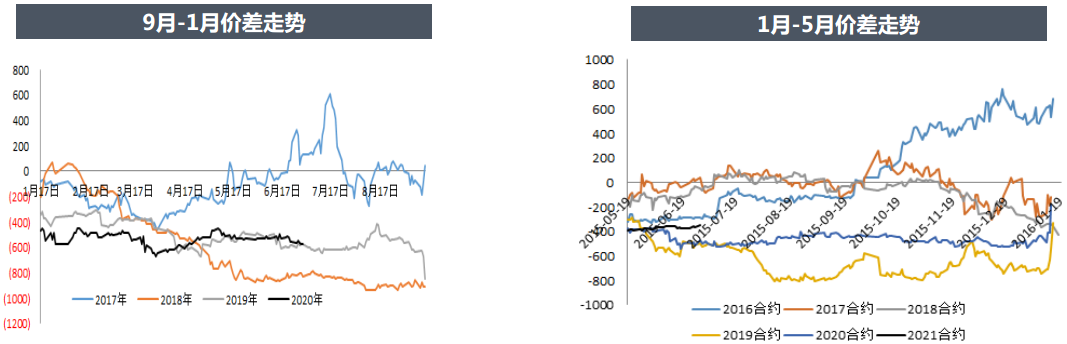 9-1價差近期持續(xù)回落,但是考慮未來遠(yuǎn)月疫情影響相對較小且消費可能恢復(fù),因此遠(yuǎn)月想象空間更大,可以考慮在低點做大價差。