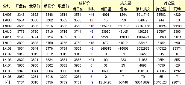 主力TA009合約當(dāng)日交易走勢(shì)