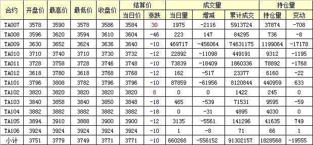 主力TA009合約當(dāng)日交易走勢(shì)