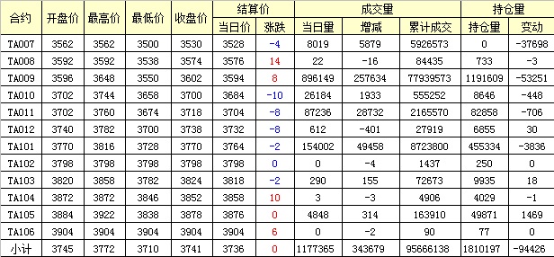 主力TA009合約當(dāng)日交易走勢