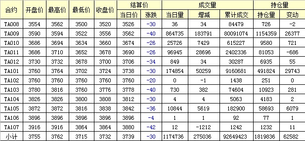 主力TA009合約當日交易走勢