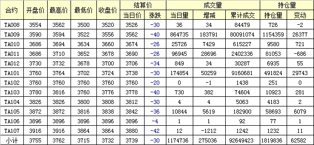 主力TA009合約當(dāng)日交易走勢(shì)