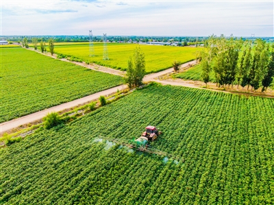 近年來,呼圖壁縣大力推廣“智慧農(nóng)業(yè)+機(jī)械化管理”模式,通過GPS衛(wèi)星導(dǎo)航播種,植保無人機(jī)飛防,機(jī)械化中耕、噴灑農(nóng)藥、采收等作業(yè)方式,基本實(shí)現(xiàn)棉花從種到收的全程機(jī)械化。圖為7月28日,呼圖壁縣五工臺鎮(zhèn)幸福村,一臺大馬力拖拉機(jī)穿梭在棉田中噴灑農(nóng)藥。