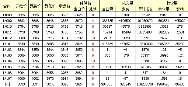 主力TA009合約當(dāng)日交易走勢(shì)