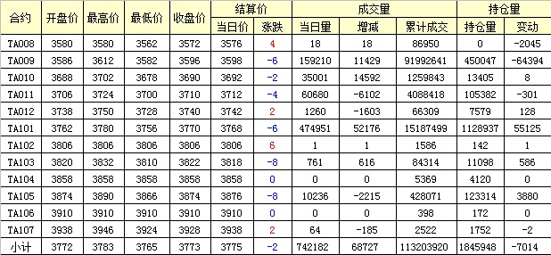主力TA009合約當(dāng)日交易走勢