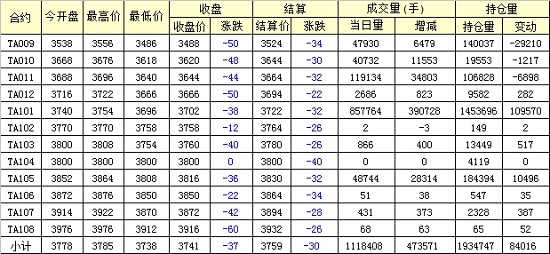 主力TA101合約當日交易走勢