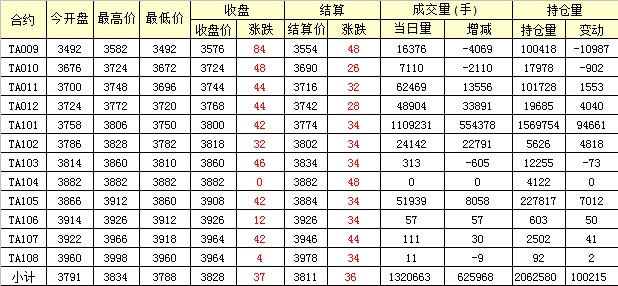 主力TA101合約當(dāng)日交易走勢