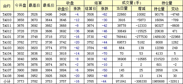 主力TA101合約當日交易走勢