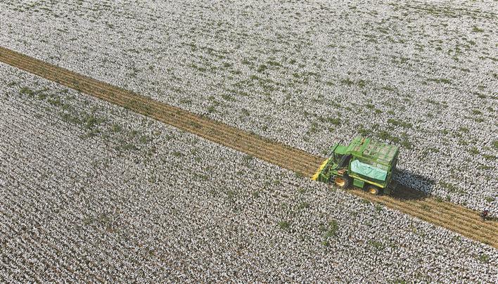 9月18日,六師共青團農(nóng)場14.7萬畝機采棉陸續(xù)開采。目前,經(jīng)過農(nóng)場有關部門初步測產(chǎn),籽棉平均畝產(chǎn)達到440公斤,植棉職工又迎來一個豐收年。