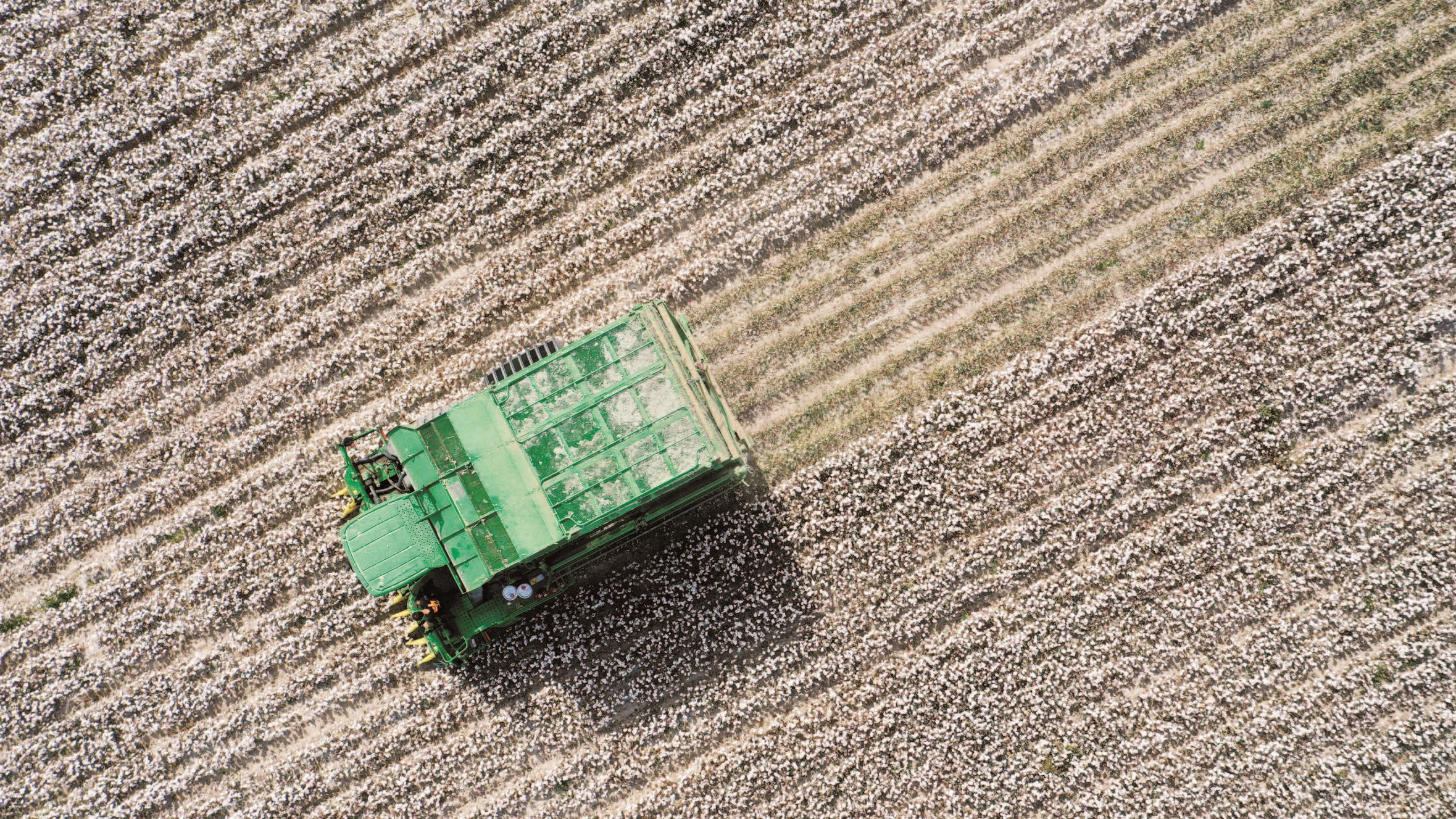 9月25日,大型采棉機在庫爾勒市普惠農(nóng)場二分場棉田內(nèi)采收棉花。眼下,巴州300余萬畝棉花成熟,采摘采收工作全面展開。