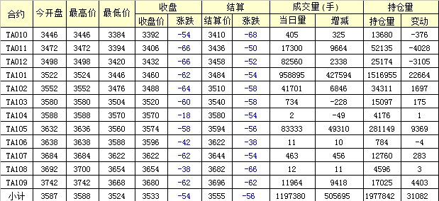 主力TA101合約當(dāng)日交易走勢(shì)