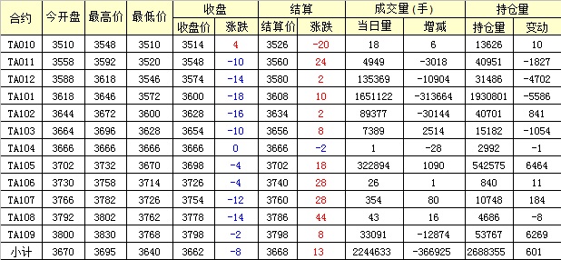 主力TA101合約當(dāng)日交易走勢