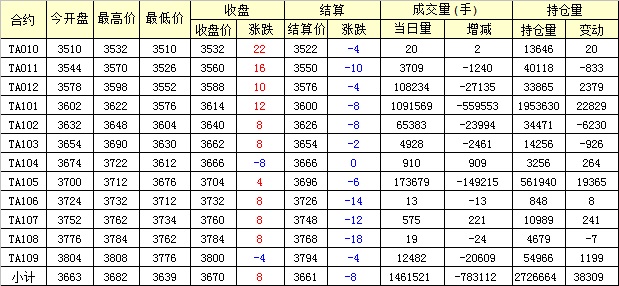 主力TA101合約當(dāng)日交易走勢(shì)