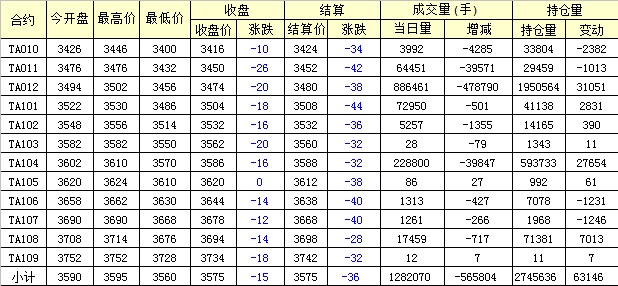 主力TA101合約當(dāng)日交易走勢