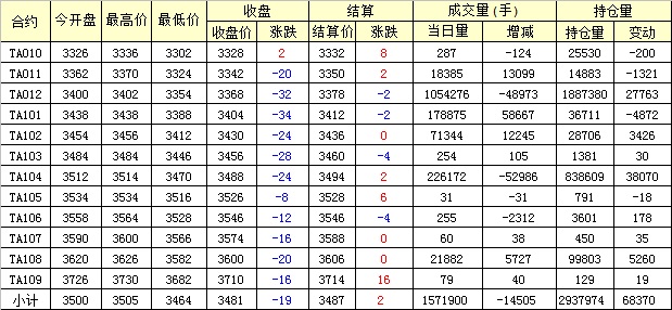 主力TA101合約當(dāng)日交易走勢