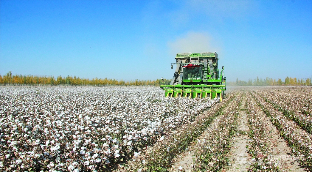 10月22日,采棉機(jī)在阿瓦提縣塔木托格拉克鎮(zhèn)塔木托格拉克村棉田里采收棉花。該鎮(zhèn)今年種植棉花16.4萬畝,其中機(jī)采棉面積9.7萬畝。