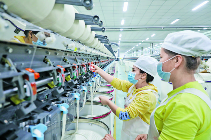 11月5日,在庫車經濟技術開發(fā)區(qū)新疆厚立紡織科技有限公司生產車間,老員工為新員工講解機器操作方法。為幫助企業(yè)新員工盡快適應工作,庫車市部分企業(yè)建立人才培養(yǎng)基地和實習、實訓基地,通過崗前“傳幫帶”模式開展培訓,提高員工勞動技能。