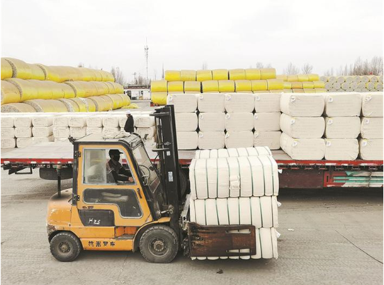 11月10日,七師眾信合種植專業(yè)合作社杰鑫棉花加工廠工人在調(diào)運(yùn)皮棉。進(jìn)入11月,七師200多萬(wàn)畝棉花采收工作基本結(jié)束,各軋花廠開足馬力生產(chǎn),爭(zhēng)取用最短時(shí)間加工出優(yōu)質(zhì)皮棉。