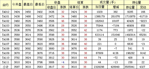 主力TA101合約當日交易走勢