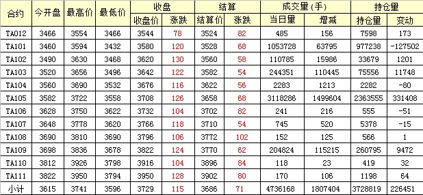 主力TA101合約當(dāng)日交易走勢(shì)