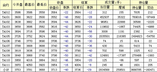主力TA101合約當(dāng)日交易走勢(shì)