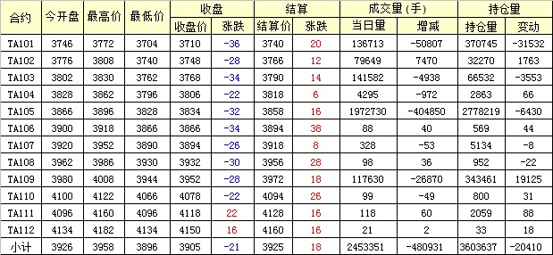 主力TA105合約當(dāng)日交易走勢