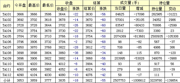 主力TA105合約當日交易走勢