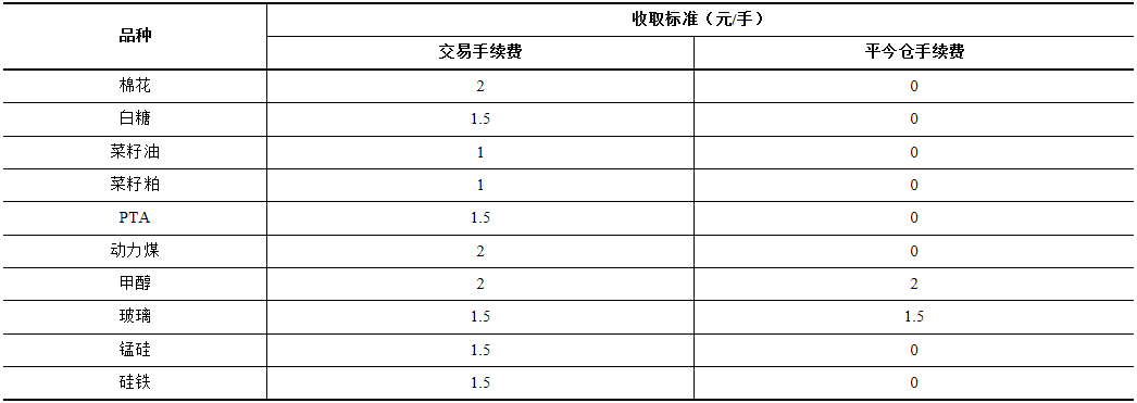 棉花等期貨品種相關(guān)合約手續(xù)費(fèi)收取標(biāo)準(zhǔn)