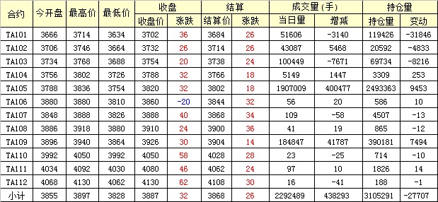 主力TA105合約當(dāng)日交易走勢