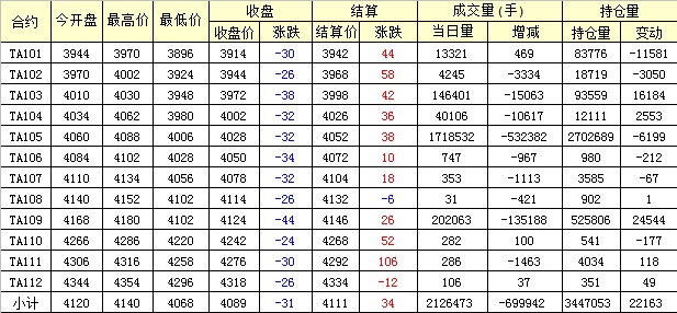 主力TA105合約當(dāng)日交易走勢(shì)