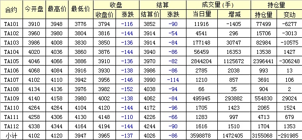 主力TA105合約當日交易走勢