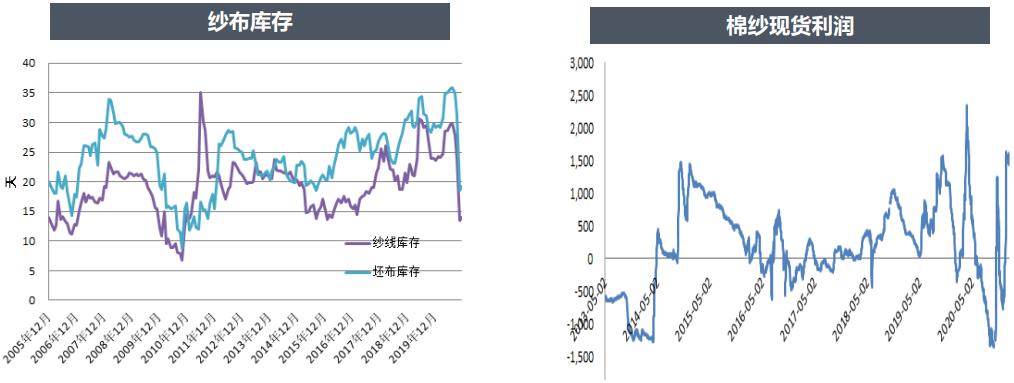紗布庫存低,棉紗利潤高