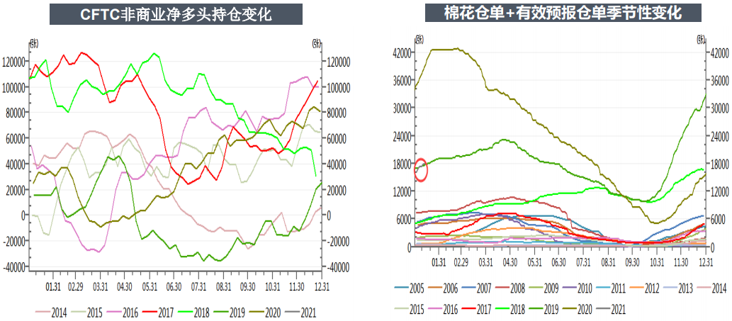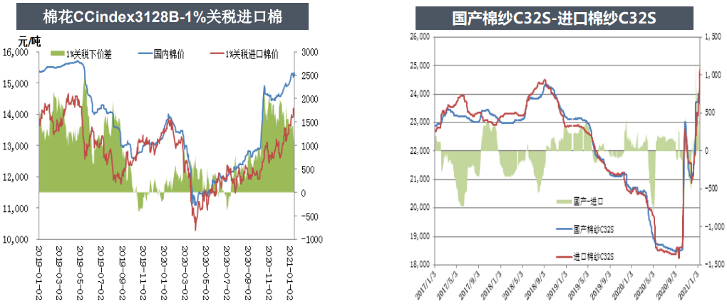 國內(nèi)市場,供應(yīng)端棉花有大量商業(yè)庫存+大量新棉+進(jìn)口棉,短時間內(nèi)棉花供應(yīng)充足;需求端,內(nèi)需隨著國內(nèi)經(jīng)濟(jì)的恢復(fù),需求端數(shù)據(jù)持續(xù)向好,出口數(shù)據(jù)也非常好,整體消費都在好轉(zhuǎn),但1月13日美國出臺制裁新疆棉的文件使得市場對消費市場略有擔(dān)憂。短期鄭棉多空因素交織,下游庫存低且需求較好短期支撐鄭棉,此外美棉走強(qiáng)抬高整體棉價,但上方短期有美國制裁新疆棉的利空,還有套保盤壓力,價格上漲和下跌都有壓力和支撐。