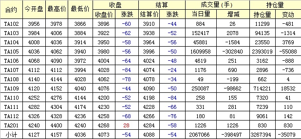 主力TA105合約當日交易走勢
