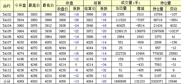主力TA105合約當(dāng)日交易走勢