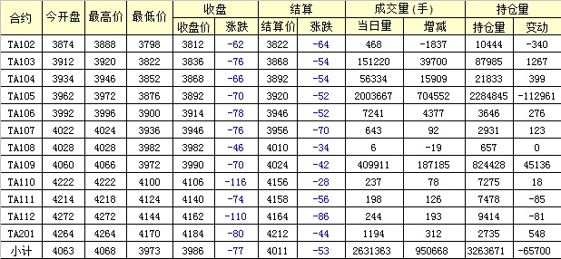 主力TA105合約當(dāng)日交易走勢(shì)