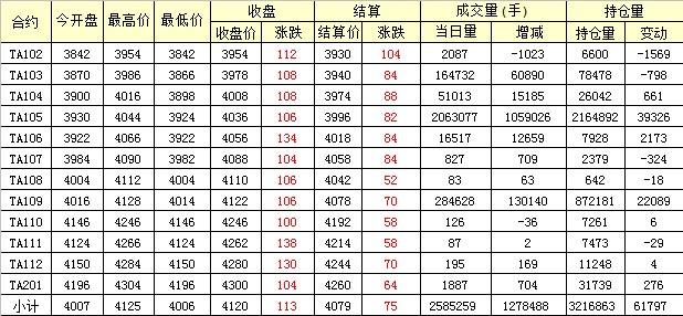主力TA105合約當日交易走勢