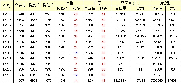 主力TA109合約當(dāng)日交易走勢(shì)