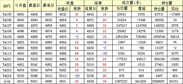 主力TA109合約當(dāng)日交易走勢(shì)