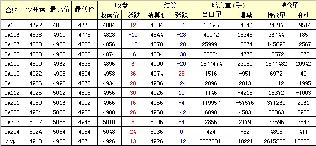 主力TA109合約當(dāng)日交易走勢(shì)