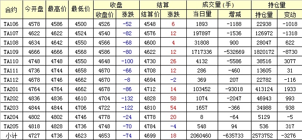 主力TA109合約當(dāng)日交易走勢(shì)