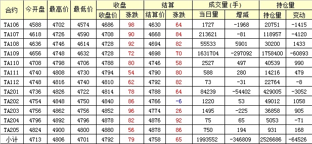 主力TA109合約當(dāng)日交易走勢(shì)