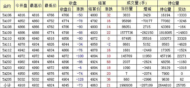主力TA109合約當日交易走勢